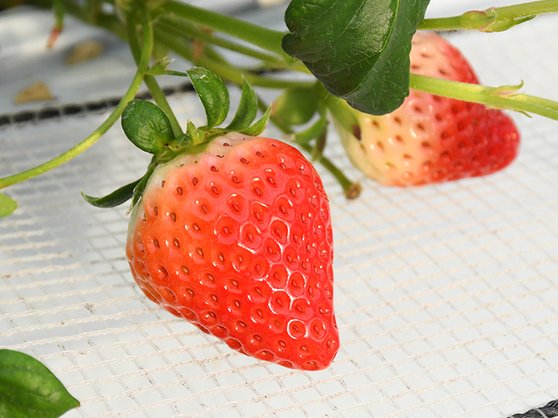 「ゆうべに」が食べられる観光農園として、平成29年にオープンしました。園内のいちごは、全て上下2段構えの高設栽培。バリアフリー設計で栽培棚の間隔も広く、小さなお子様からご年配の方、車イスの方も安心してご利用いただけます。