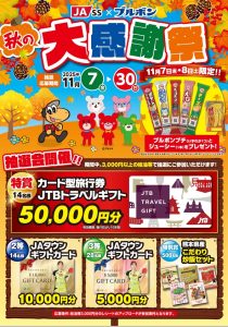 さらに、11月7日・8日にはJA-SSをご利用の方にブルボンプチとジューシーをプレゼント!